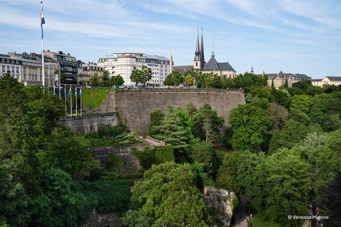 Je begint in Luxemburg-stad, waar moderne architectuur en eeuwenoude vestingwerken moeiteloos samenkomen. Terwijl je door het historische centrum wandelt, geniet je van het uitzicht over diepe valleien en groene heuvels, een perfecte start van je avontuur.